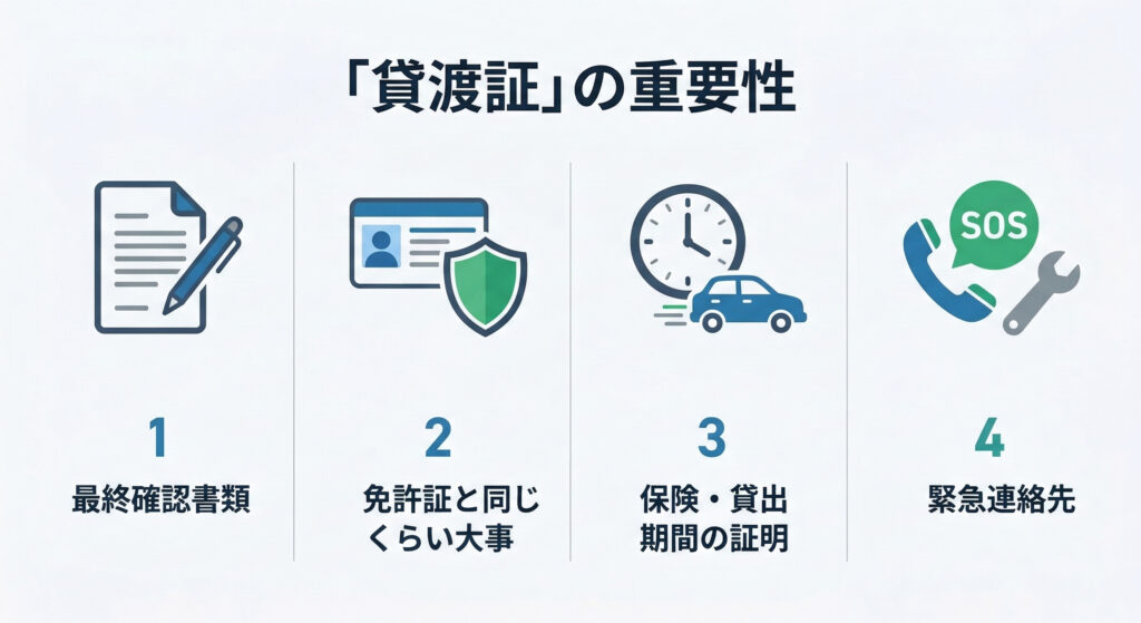 初めてのレンタカーは緊張するもの。でも、「何かあったら貸渡証を見ればいい」と知っているだけで、安心感がグッと高まります。
