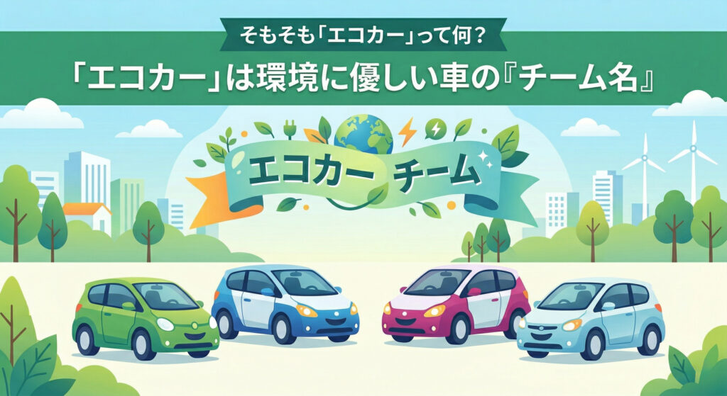 まず最初に知っておきたいのが、「エコカー」というのは特定の車の種類ではなく、環境に優しい車全般を指す「チーム名」のようなものだということです。