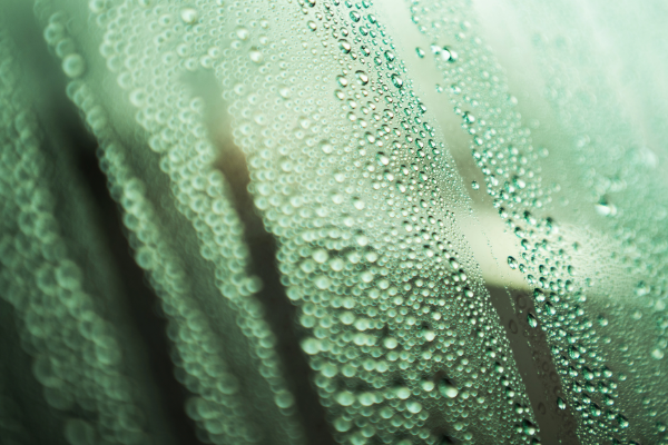 冬の車内はあったかい分、窓にすぐ水滴がびっしりつきます。