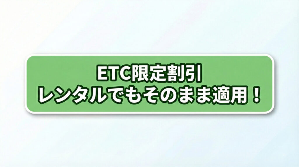レンタルであっても、深夜割引や休日割引などのETC限定割引が適用されます。走る距離や時間帯によっては、レンタル料以上の割引を受けられることも珍しくありません。