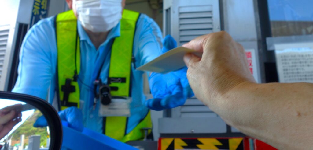 ETCカードがない場合は、料金所の「一般」と書かれたレーンに進みます。入り口で通行券を取り、出口でその券と一緒に現金、またはクレジットカードを渡して精算すれば通行可能です。