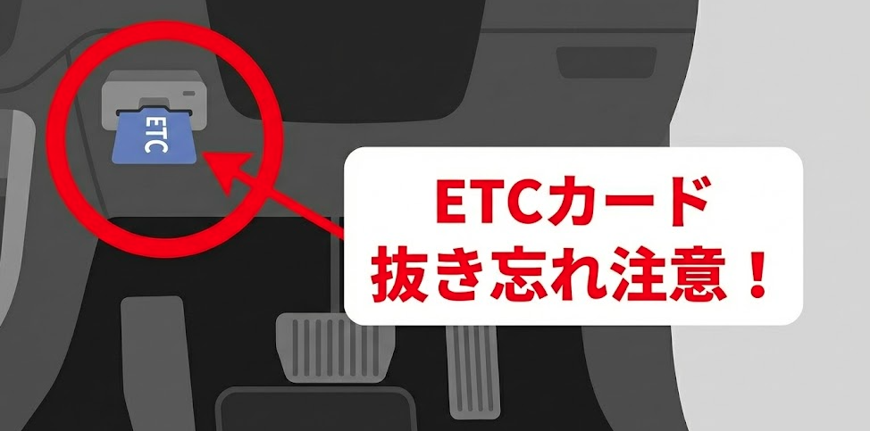 自分のカードを持参した場合でも、お店で借りた場合でも、意外と多いのが「ETCカードの抜き忘れ」です。店を出た後に気づくと、その後の手続きが少し大変になります。